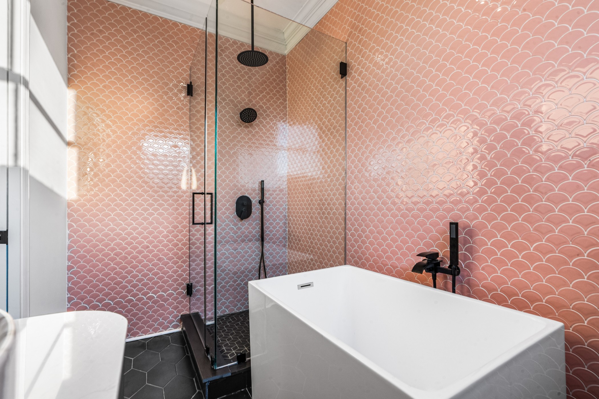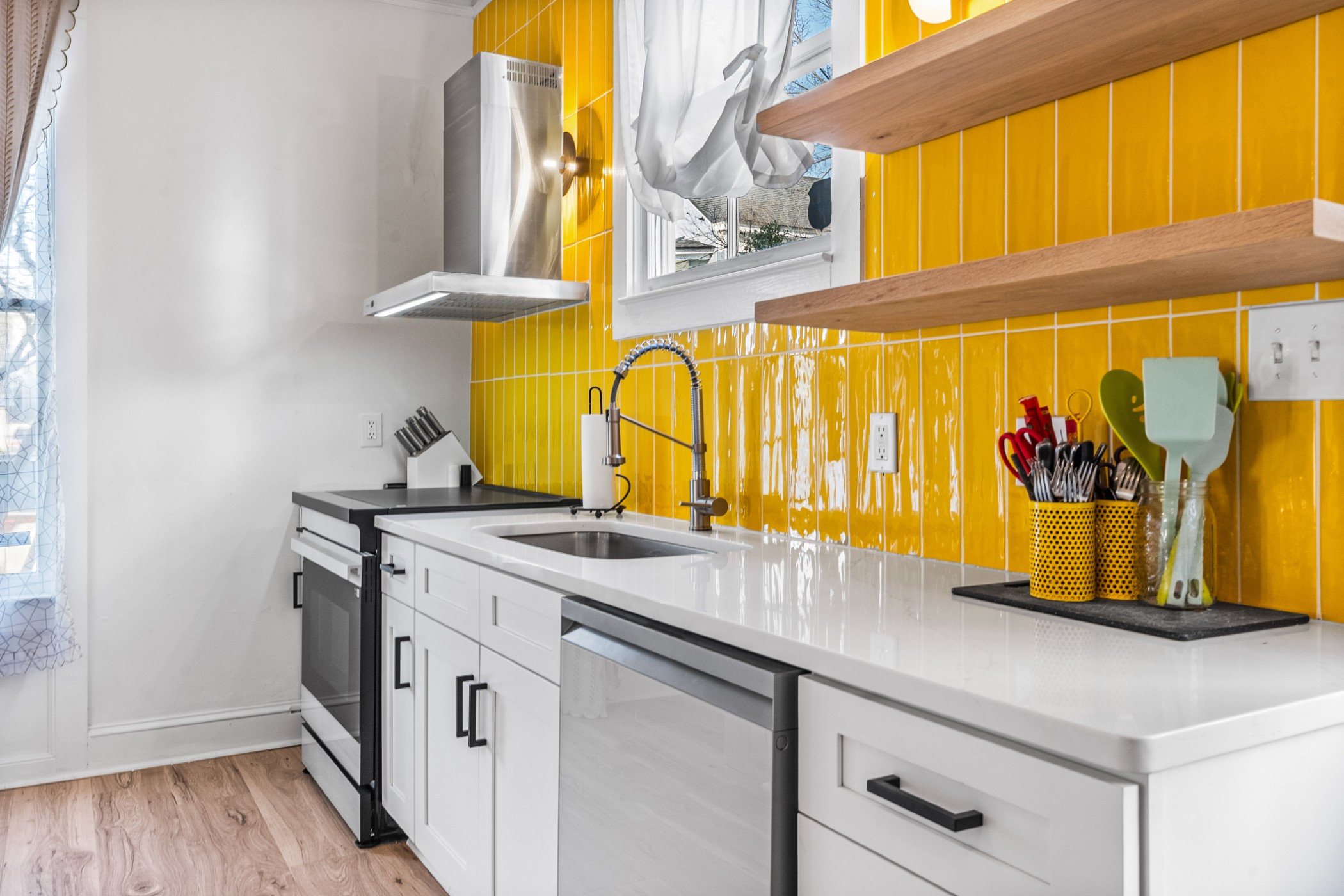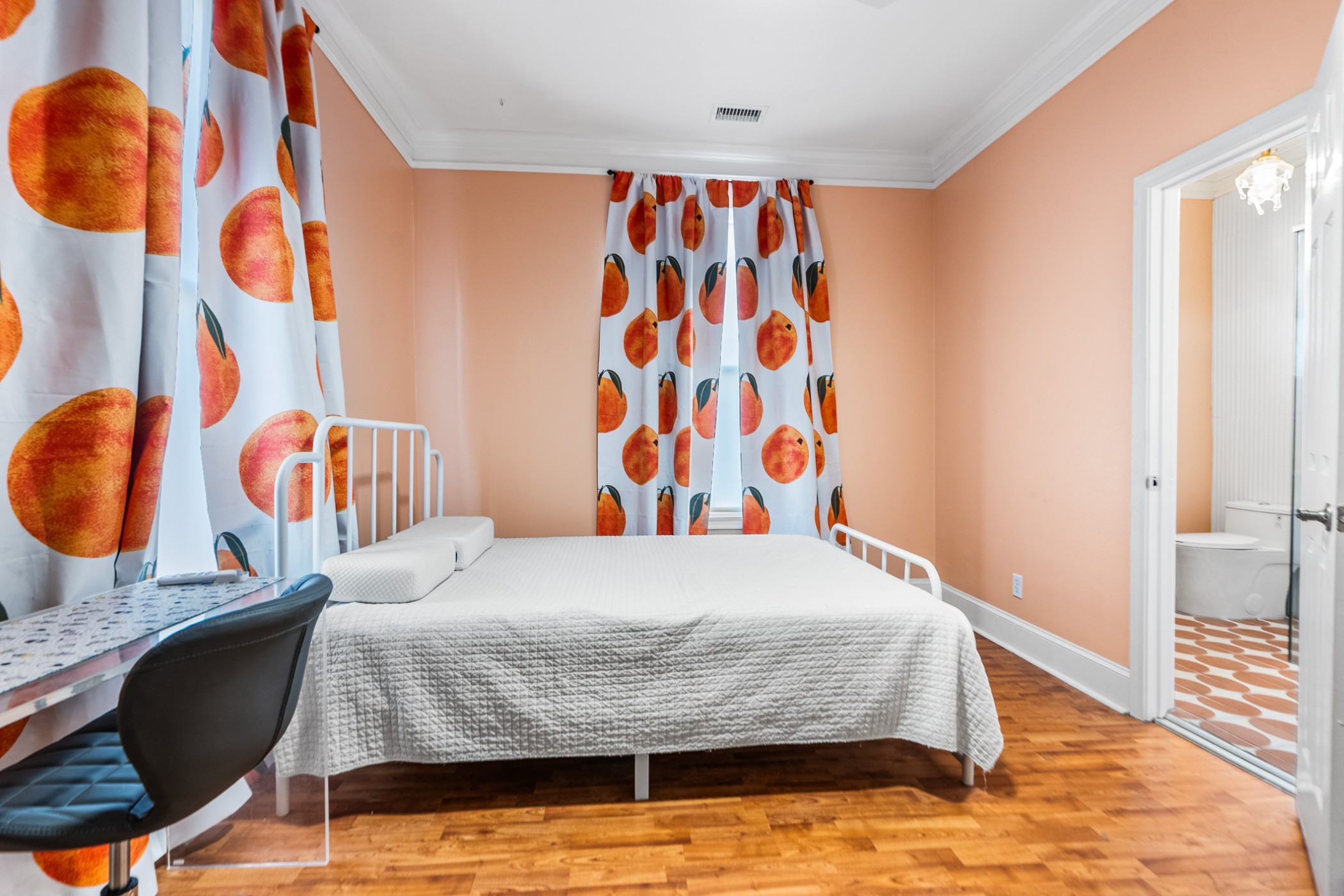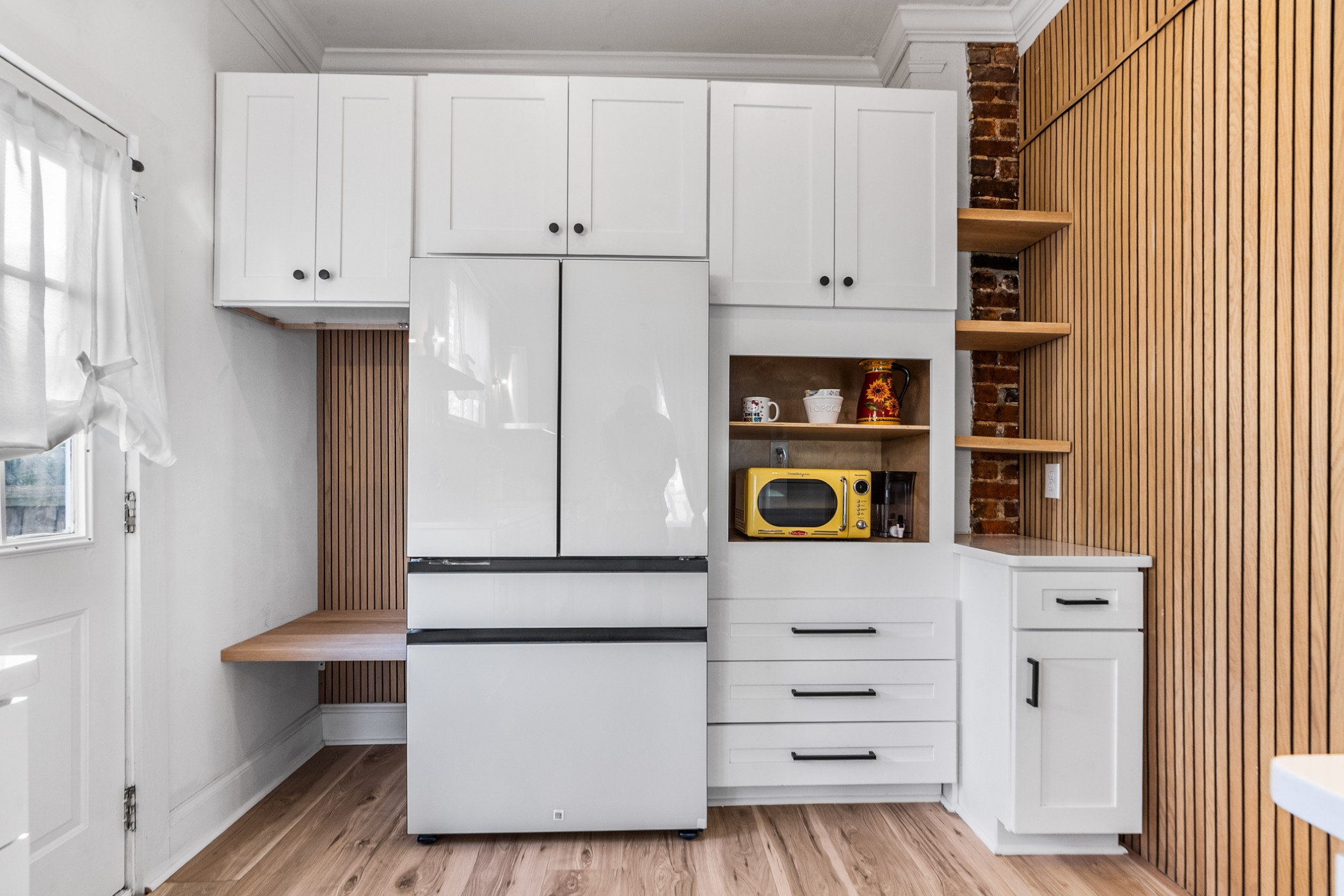 Bold, bright, and anything but cookie-cutter—this end-unit townhouse is a standout from the moment you walk inside. Exposed brick, clean lines, and curated finishes come together to create a space that feels both elevated and full of modern personality. At the heart of the home, the kitchen showcases undeniable character and makes an unforgettable impression. The main-level half bath is anything but an afterthought, showcasing a custom vanity and modern detailing that carry the home’s design throughout. Upstairs, two spacious bedrooms each feature updated en-suite bathrooms, where trendy design, glass enclosures, and thoughtfully selected finishes create spaces that are both functional and visually memorable. A private courtyard adds an outdoor element and creates an extension of the living space. Distinctive in design and thoughtfully executed throughout, this home offers a refreshing departure from the ordinary.
